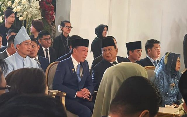 Jakarta, Denting.id – Presiden Prabowo Subianto menghadiri acara pernikahan sekretaris pribadinya, Agung Surahman, yang digelar di Taman Mini Indonesia Indah (TMII), Jakarta Timur, Minggu (18/1/2026). Presiden RI ke-7 Joko Widodo (Jokowi) turut hadir dalam acara tersebut.