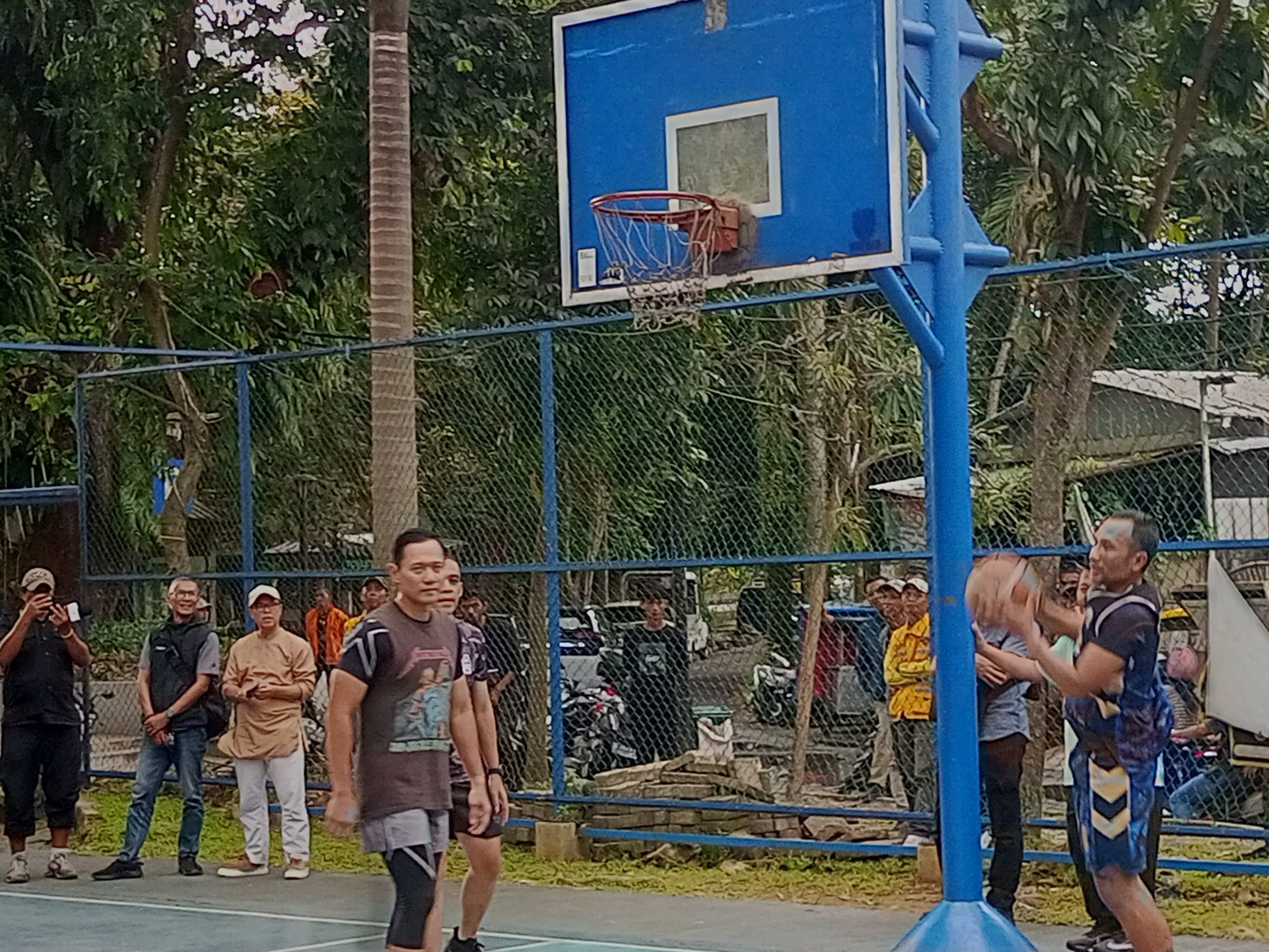 Kemudian, ia bersama jajaran melakukan adu tanding permainan bola basket bersama warga yang tengah bermain saat itu. Dengan penuh semangat, Menko AHY menunjukkan performa permainan yang tangguh di tengah menjalani ibadah puasa di bulan Ramadan.